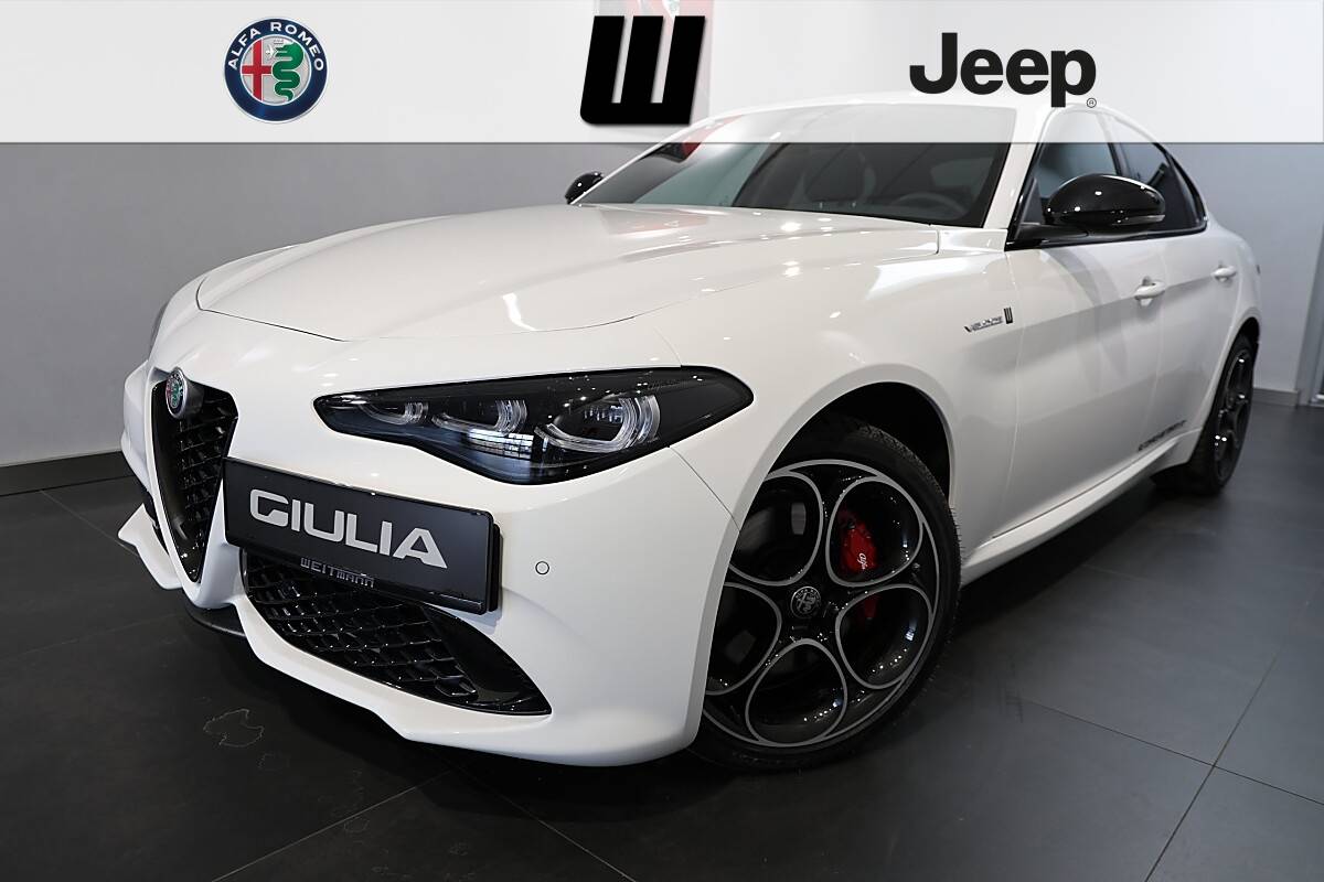 Highlights VELOCE-Ausstattung: 19 Leichtmetallfelgen Abgedunkelte Scheiben hinten und Heck Bremssättel rot mit Alfa Romeo Schriftzug Fensterumrahmung schwarz glänzend Außenspiegelkappen schwarz glänzend Sport-Ledersitze 6-fach elektrisch verstell-& beheizbar mit elektr. verstellb. Sitzwangen Lenkradheizung Adaptive Full LED Matrix Scheinwerfer & LED Heck und Bremsleuchten Neuer Frontgrill (Scudetto) mit Wabenstruktur V-Grill in schwarz glänzend Sport Stoßfänger vorne im VELOCE Design Außenspiegel elektrisch verstellbar, beheizbar und anklappbar Schwarze Außenspiegelkappen mit integriertem LED Blinker Türgriffbeleuchtung außen Beheizte Waschanlagendüsen Außenspiegel automatisch abblendend Neue volldigitale 12,3 TFT Instrumentenanzeige Alfa Connect 3D Navi mit 8.8 Farbdisplay und Multitouch Funktion (3D Sat Navi, Radio, MP3, USB und Aux in) mit Sprachsteuerung und zusätzlicher Rotary Pad Bedienung Westeuropa Karten fürs Navigationssystem Bluetooth mit Freisprecheinrichtung und Audio Streaming DAB Digital Radio Empfang Apple CarPlay/Android Auto Induktive Ladestation USB Anschluss unter Klimabedienung USB Anschluss für die 2. Reihe nur mit Ladefunktion Multifunktionstasten am Lenkrad Alfa Connect Telematik Box
