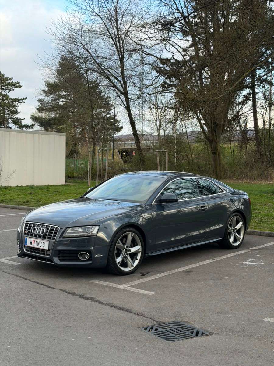 Zum Verkauf steht ein gepflegter Audi S5, Baujahr 2009, in grauer Lackierung.