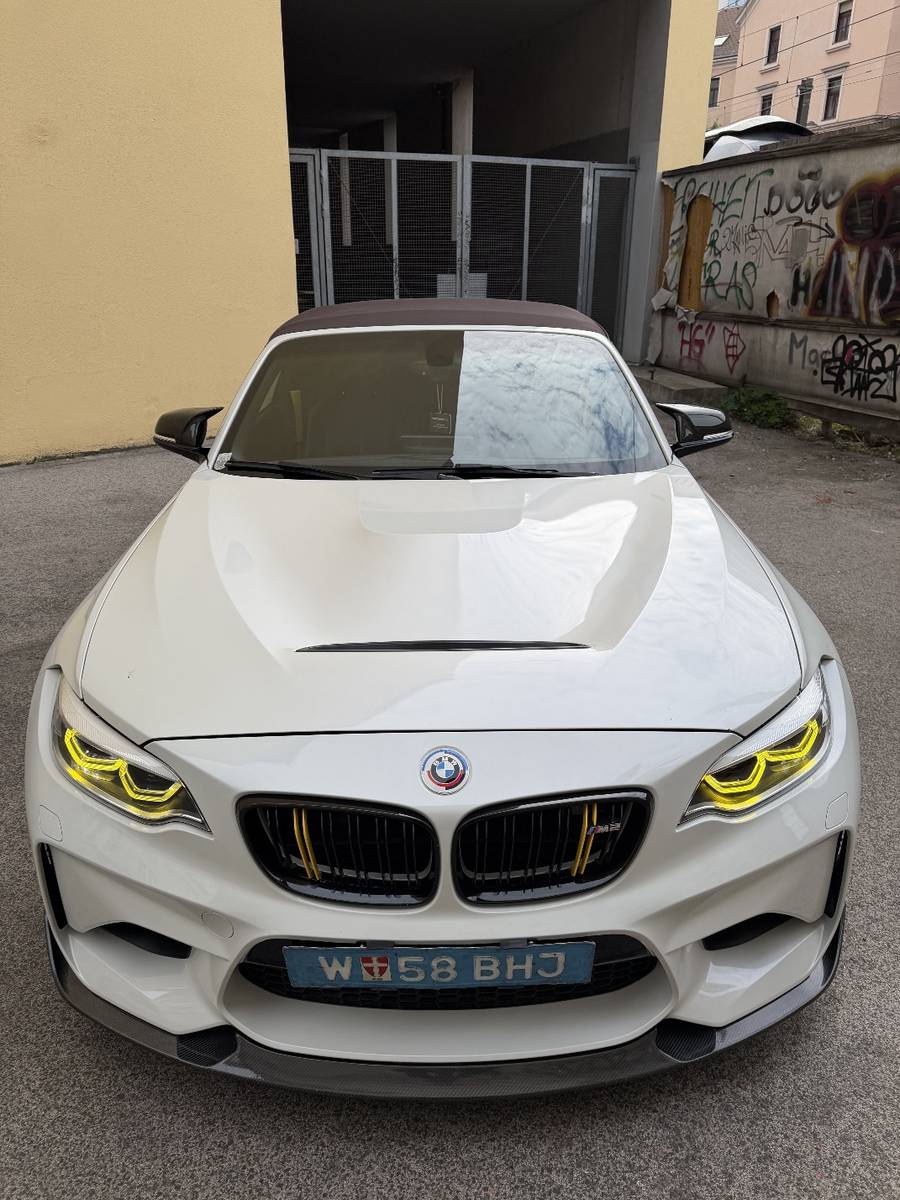 Zum Verkauf steht mein BMW M235i Cabrio, das mit viel Aufwand und Liebe zum Detail komplett auf M2-Optik umgebaut wurde – sowohl außen als auch innen.