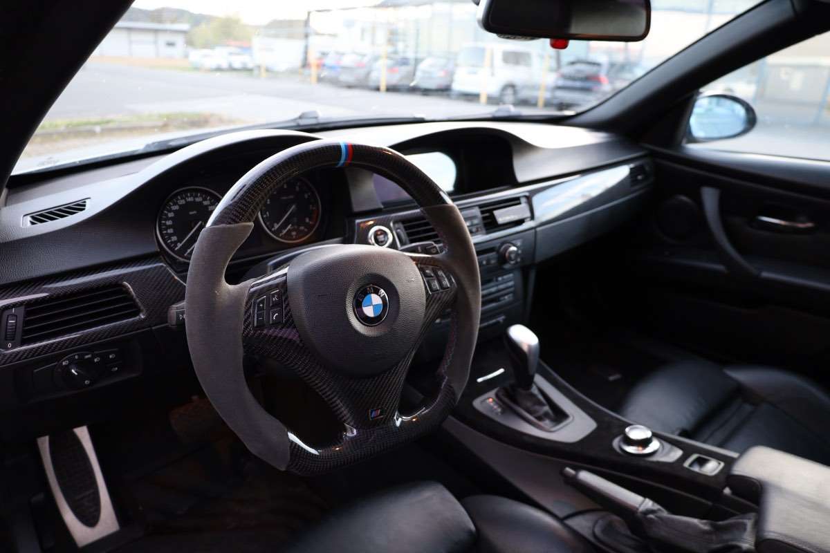 Originales Bmw Lenkrad und Interieurleisten wurden von einer Firma mit Carbon verschönert.