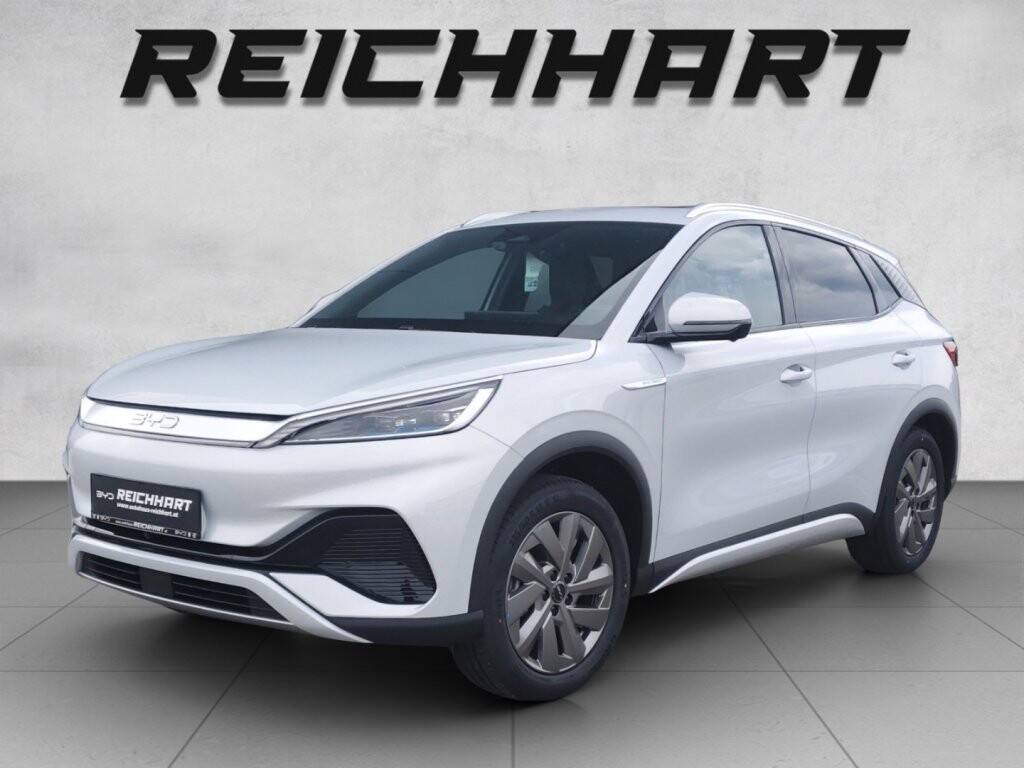 Atto3 Design, ATTO3 MY2025 Design, Panorama Sonnendach (elektrisch,Einklemmschutz), Elektrische Heckklappe, Dachreling aus Aluminium, Reifen Continental 235/50 R18 mit 18 Zoll, LED Tagfahrlicht,LED Scheinwerfer&Heckleuchten, Fahrlichtautomatik & Fernlicht-Assistent, Follow Me Home-Funktion, Beheizte und elektrisch einklappbare Außenspiegel, Umfeldbeleuchtung für Außenspiegel, Mittelarmlehne mit doppeltem Getränkehalter, Fahrersitz mit Sitzheizung & 6fach Sitzverstellung, Beifahrerseitz Sitzheizung & 4fach Sitzverstellung, Kopfstütze am mittleren Rücksitz, 2x USB Ladeanschluss (1 x Typ A, 1 x Typ C) v&h, Fußraumbeleuchtung Fahrer- und Beifahrerseite, LED Türleuchten, LED Leselicht vorne & hinten, Rhythmusgesteuerte Ambientebeleuchtung (Türgriff), Rhythmusgesteuerte Ambientebeleuchtung (Türpanel), 4x One Touch-Fensterheber mit Einklemmschutz, Automatisch abblendende Rückspiegel, Lüftungsöffnungen im Rücksitzbereich, PM2,5 Luftfilter, 5-Zoll TFT LCD Informationsdisplay, Kabelloses Laden für Smartphones, BYD DiLink, DAB & FM Radio, Elektrisch drehbarer Touchscreen (15.6 Zoll), Audiosystem mit 8 Lautsprechern, Hi, BYD! Sprachsteuerung, 4G Internetverbindung, Fahrerairbag, Beifahrerairbag, Airbag vorne (Mitte), Airbag vorne (Seite), Luftvorhang vorne (Seite), Sicherheitsgurt mit Gurtstraffer & Kraftbegr., Sicherheitsgurtwarnung, Surround View System, Toter Winkel-Assistent (BSD), Elektronisches Stabilitätsprogramm (ESP), Integrated Power Brake (IPB), Antriebsschlupfregelung (ASR), Elektronischer Bremskraftverteiler (EBD), Comfort Stop (CST), Bergabfahrhilfe, Hill Descent Control (HDC), Elektrische Parkbremse (EPB), Auto-Hold-Funktion (AVH), Türöffnungswarnung (DOW), Abstandsregeltempomat(ACC)&Intelligent Cruise(ICC), Intelligente Tempokontrolle (ISLI & ISLC), Verkehrszeichenerkennung, Antiblockiersystem (ABS), Kollisionswarnsystem (PCW), Automatische Notbremsung, Rear Collision Warning (RCW), Rear Cross Trafic Alert System, Rear Cross Brake, Spurhalteassistent, Spurwechselassistent, Notfall-Spurhalteassistent (ELK), Radar-Parksensoren vorne, Radar-Parksensoren hinten, Reifendruck-Kontrollsystem, Kindersicherung (mechanisch), 2x ISOFIX Rücksitz, 1x ISOFIX Beifahrer, Notrufsystem, Vehicle-To-Load (V2L), 2x e-Schlüssel & 1x NFC Schlüssel, Keyless Entry & Keyless Start, Wärmepumpe, 11 kW On-Board-Charger, Regensensor, Fahrersitz mit Kühlung und Sitzheizung, Multifunktionslenkrad mit Lenkradheizung, Panorama Sonnendach mit Sonnenblende, Sitze aus veganem Leder, Metallic Lackierung, Android Auto & Apple Car Play, 3 Fahrmodi