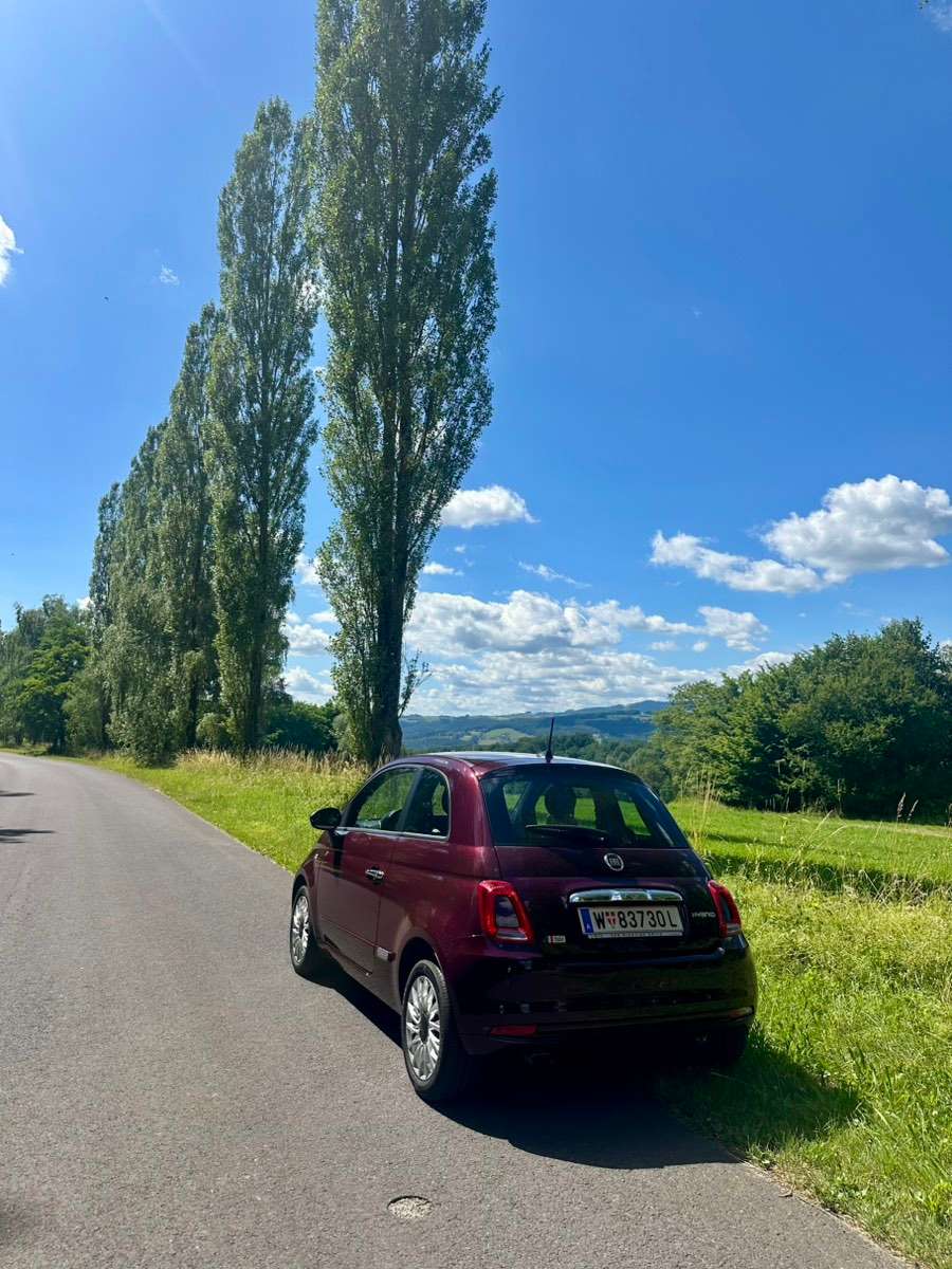 Ich verkaufe meinen sehr gepflegten Fiat 500 in einem wunderschönen Dunkelrot.