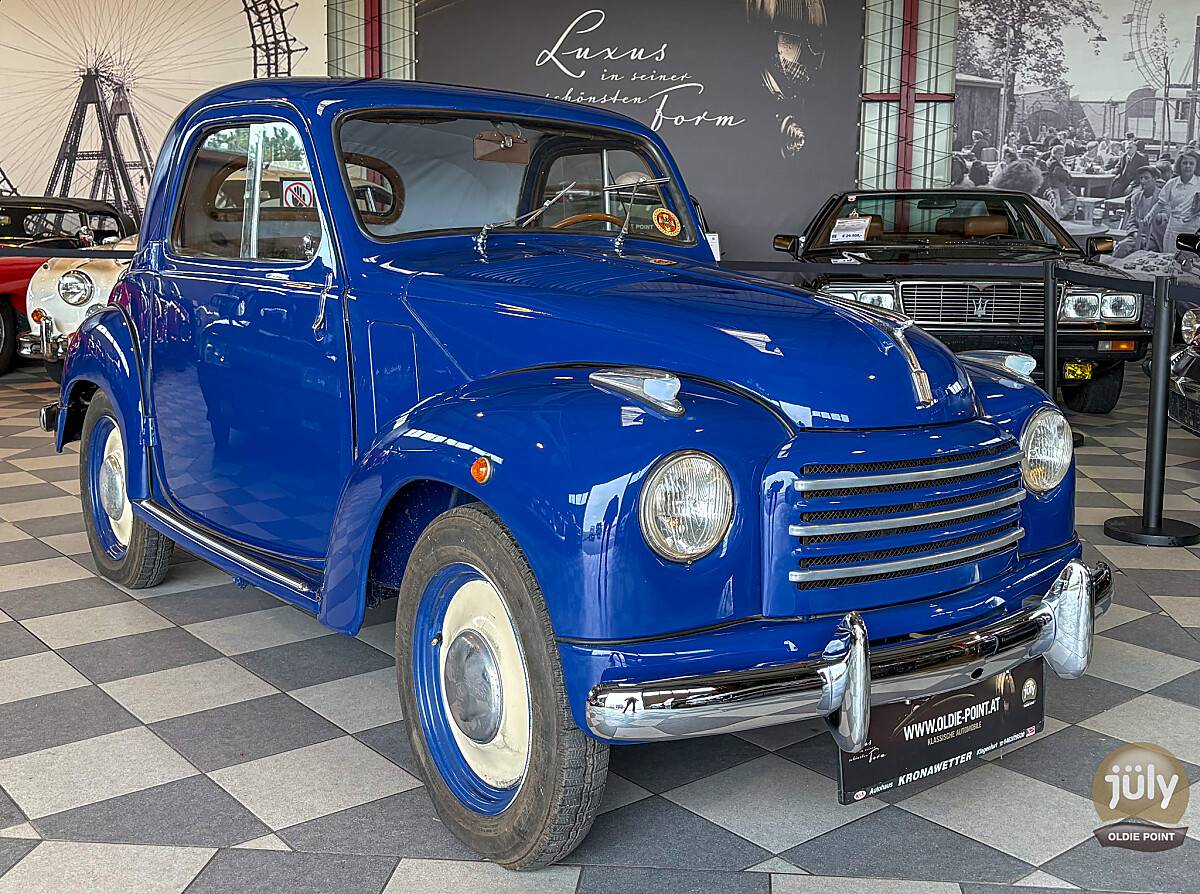 Mit dem Fiat 500C Topolino präsentiert sich einer der charmantesten Vertreter der italienischen Automobilgeschichte. Kaum ein Fahrzeug verkörpert den automobilen Zeitgeist der frühen Nachkriegsjahre so authentisch wie der „Topolino“ – ein Klassiker mit unverwechselbarer Ausstrahlung und großer historischer Bedeutung.