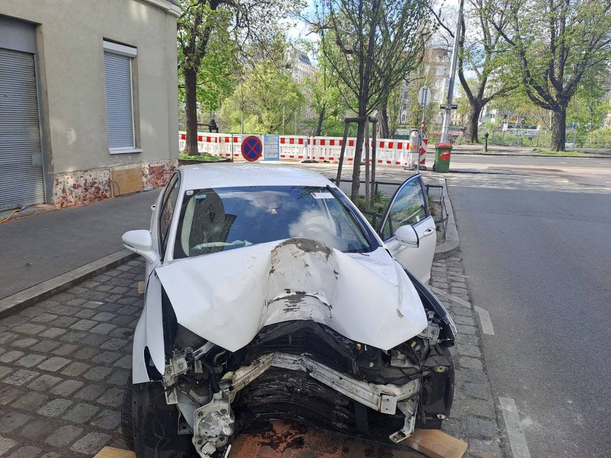 Unfallwagen mit starkem Frontschaden.