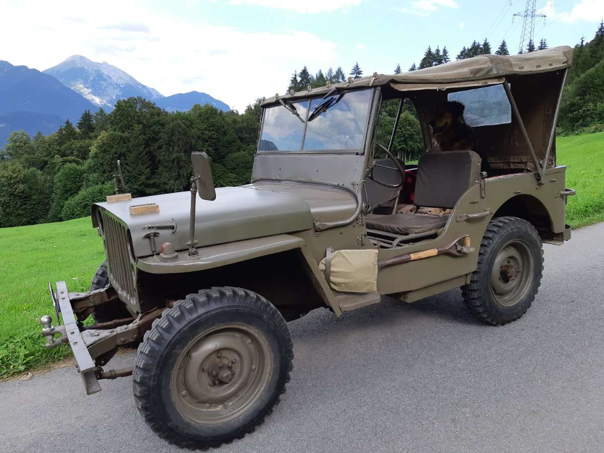 Trenne mich nach 10 jährigen Besitz von meinem Jeep Willys MB, war vor mir 40 Jahre im Privatbesitz in Nachbargemeinde, vorher vermutlich beim österr.Bundesheer, originales BH Winterverdeck, komplett geschlossen, ich bin am liebsten ohne Verdeck am Weg, es wurde in den letzten 10 Jahren einiges erneuert, wie Bremsen, Auspuff, diverse Blechteile, Öle, neue 6 V Batterie, läuft gut, wurde ständig bewegt und das Pickerl gemacht, ist nicht perfekt, aber gut, Original 60 PS Benzin go devil Motor, Einzelgenehmigung von Tiroler Landesregierung aus 1948,