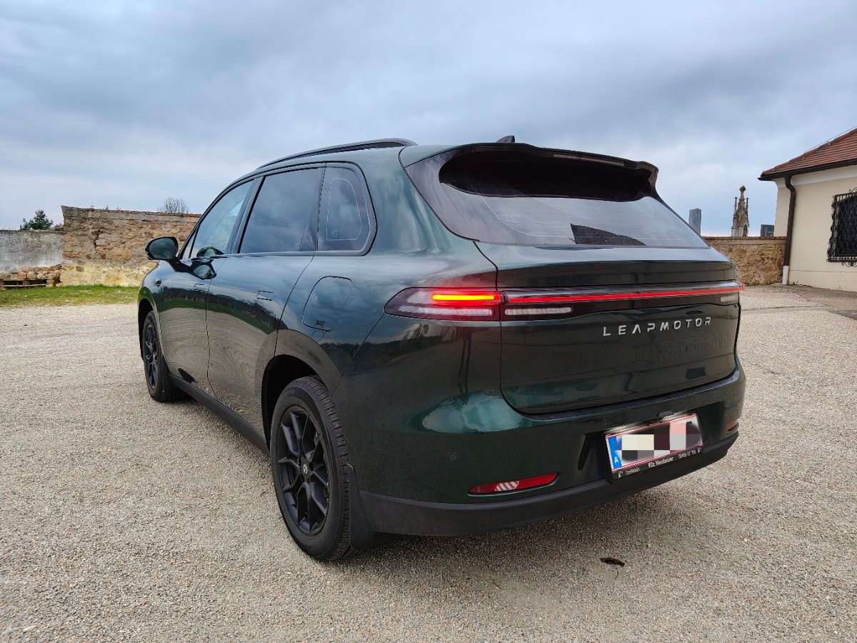 Neuwertiger top Leapmotor C10 REEV in schönem glitzert Dunkelgrün mit dazu passender brauner Lederausstattung und div. Extras/Zubehör (Passform Innenraumfußmatten,Kofferraummatte, div. Ablagen,Handyhalter, elektr. Kofferraumklappe, verdunkelte Scheiben usw.)