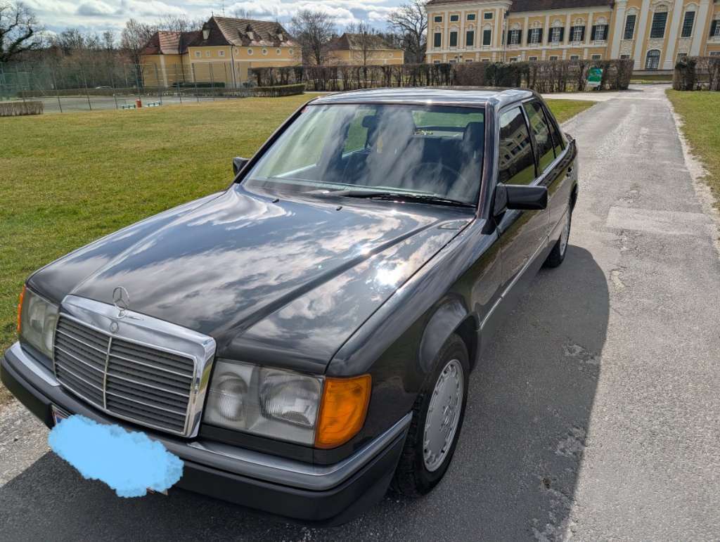 Der Mercedes W124 ist ein Diesel mit 72 PS und hat Oldtimerzulassung.