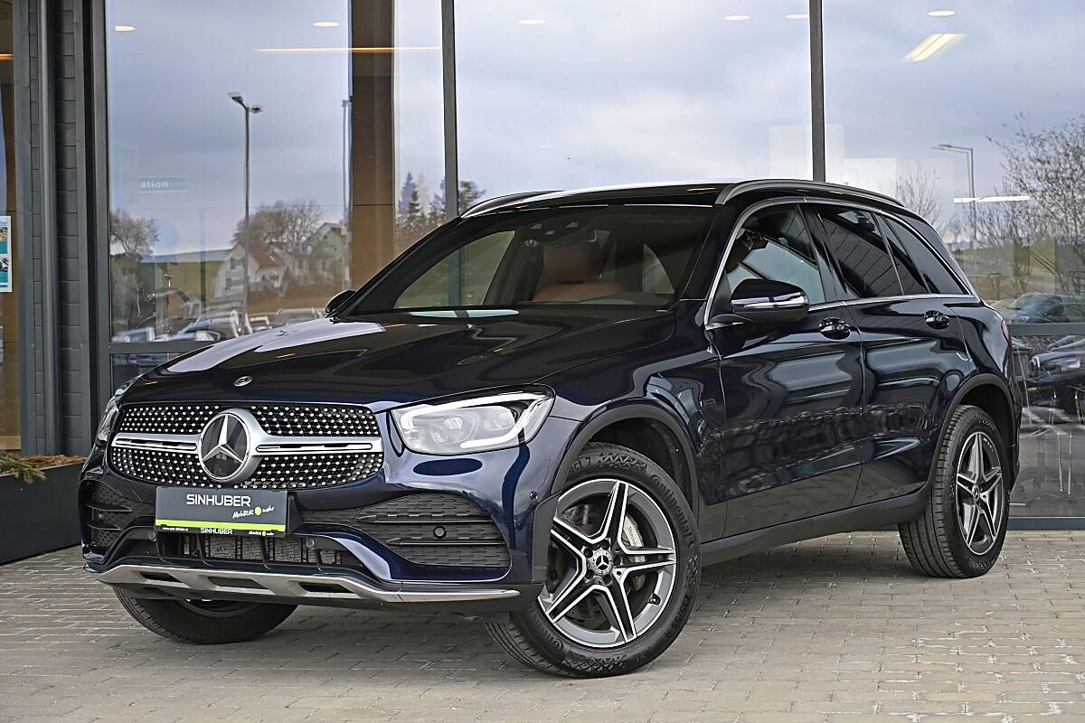 Sie suchen einen sparsamen SUV mit Hybrid-Motorisierung? Mercedes Benz GLC 300 e mit AMG Paket in Cavansitblau Metallic mit großzügiger Sonderausstattung!