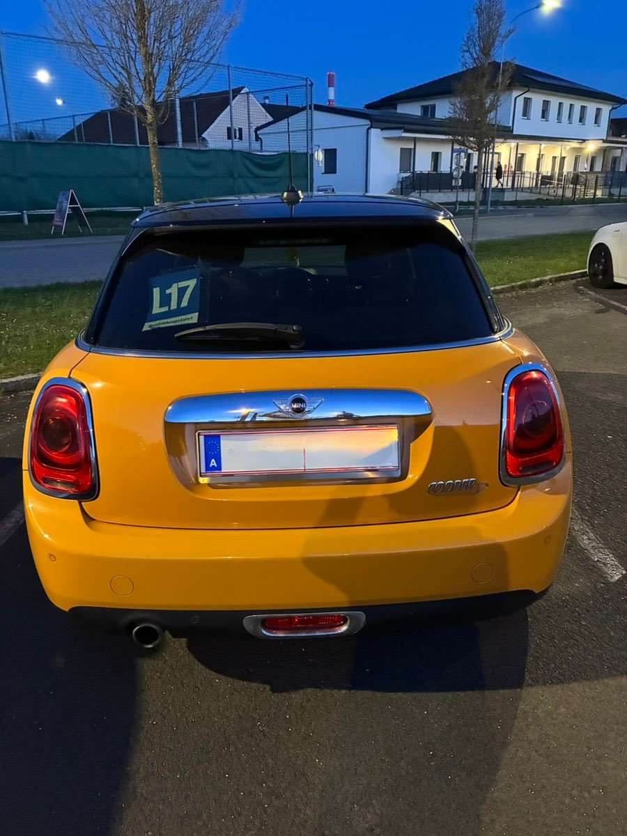 Zum Verkauf steht ein gepflegter Mini Cooper in einer besonders attraktiven Farbkombination: kräftiges Orange mit schwarzem Dach, schwarzen Spiegeln und sportlichen Streifen auf der Motorhaube. Das Fahrzeug überzeugt durch seinen unverwechselbaren Look und den typischen Mini-Fahrspaß.