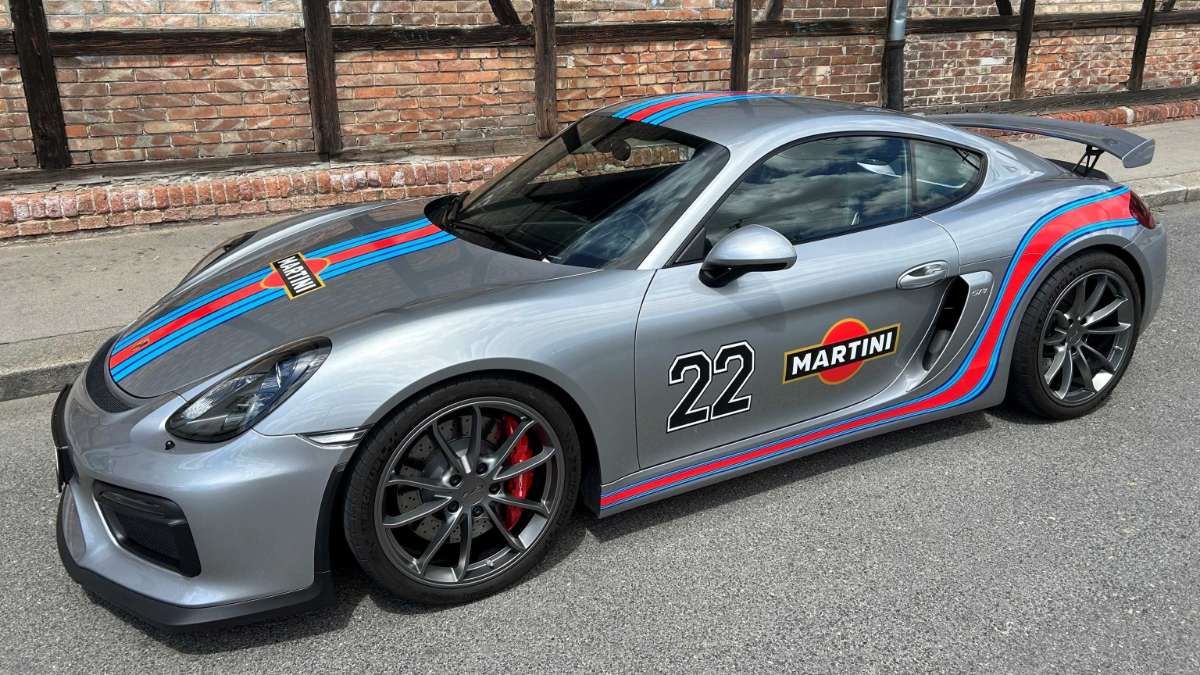 Es wurde alles angekreuzt, von der Farbe GT-Silber, einer original Martini-Porsche Folierung und den großen Porsche GT-Alufelgen über den Innenraum mit erweiterten Carbon/Alcantara (der gesamte Dachhimmel und Beifahrerfach ist mit Alcantara überzogen, Einstiegsleisten und Cockpit in Carbon) bis zum Sport-Chrono Paket mit den 18-fach verstellbaren Sportsitzen, sowie Sport-Lederlenkrad und lederbezogenen Schaltknauf.