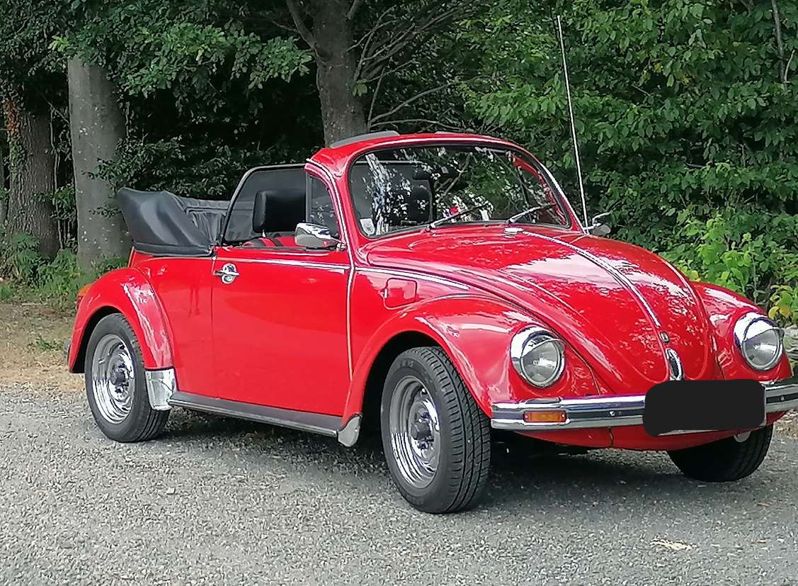 Die Innenausstattung beinhaltet einen Radio mitCD-Player und eingebaute 2- Wege Boxen in den beiden Türen. Vor 3 Jahren wurden die Sitze und die Rückbank restauriert und mit schwarz-roten Leder ausgestattet. Ein großes Service 2025 mit der Erneuerung des Lenkungsdämpfers, Bremsschläuche, Zündkerzen und Ölwechsel mit Filter wurde in einer Fachwerkstätte durchgeführt. Der Käfer steht in einem Carport und wird nur im Sommer bei Schönwetter gefahren. Es gibt daher KEINE Roststellen! Im Juli 2025 wurde das Cabrio von einem Gutachter bewertet . Note +2 und wunderschön!!!