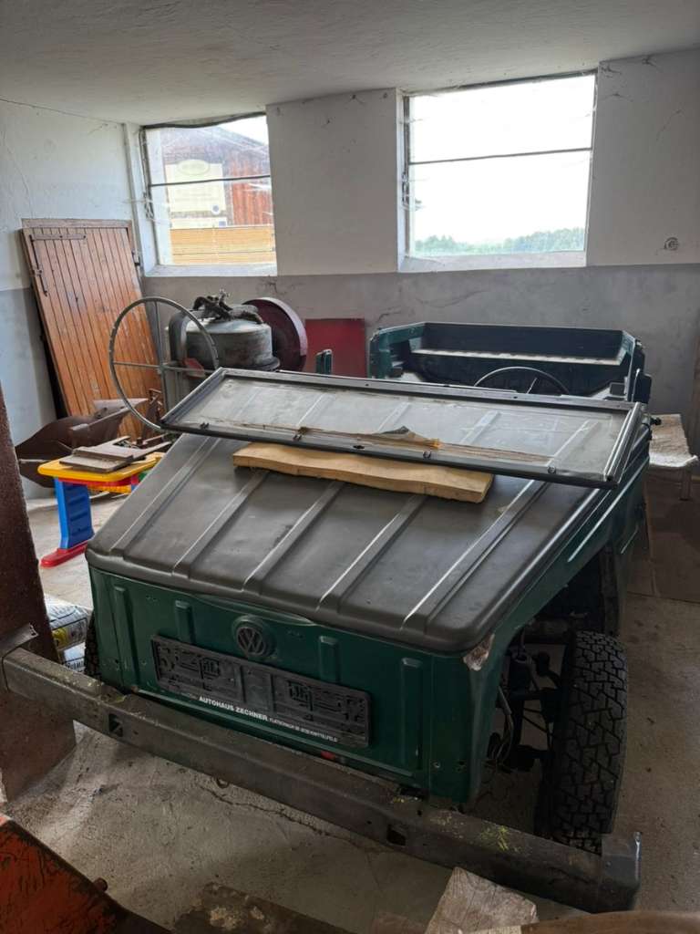 Der Kübelwagen steht mittlerweile schon ein paar Jahre, Fahrzeug ist aber ansonsten in Teilen komplett, aktuell aber komplett zerlegt.