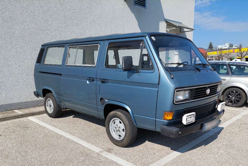 T3 Multivan 2.1 WBX, frisch serviciert und angemeldet. Neuer Motor (Kurbelwelle, Lager, Nockenwelle, Ölpumpe, Stössel, Köpfe bearbeitet ( original VW), 124 PS, höheres Drehmoment. Neues Original VW 5 Gang Getriebe mit verstärktem Gehäuse. Weitere Neuteile: Abtriebswellen, Bremsen vorne und hinten inkl. Schläuche, Trommeln und Scheiben, Kühler, Servoleitungen, Motorträger, Ankerblecke, Tank, Benzinpumpe, Einspritzdüsen, Benzinschläuche, Benzindruckregler, Radlager, Gelenke und vieles mehr. Technisch neuwertig. Unterboden absolut rostfrei aber mit 38 Jahren Gebrauchsspuren und vielen Lackschäden an der Karosserie. Sollte lackiert werden. Der Bus war NIE im Winterbetrieb! Garagenfund, wurde vor dem technischen Wiederaufbau 13 Jahre in einer verfallenen Garage abgestellt und davor nur für Urlaubsfahrten nach Griechenland verwendet. Original VW Produktions Pickerl auf Hinterachsschwingen vorhanden. Wenig Regenfahrten. Großes Schiebedach, VW T3 Cabrio Feeling mit WBX Sound, serienmäßig ohne Kat. Läuft schnell mal 150 und mehr. Gesamte originale blaue Multivanausstattung vorhanden aber ausgebaut. Er wird nur als Spaß Transporter verwendet. Km lt. Tacho. Motor + Getriebe ca. 13 tkm. Privatverkauf ohne Garantie und Gewährleistung. Soundcheck/Probefahrt gerne möglich. Ab Mai / Juni zu haben.
