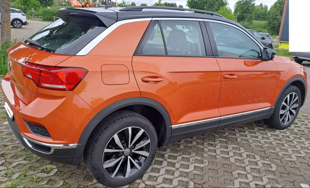 Verkaufe meinen sehr gepflegten Volkswagen T-Roc (Baujahr 2018) in der eleganten Farbkombination Orange/Schwarz.