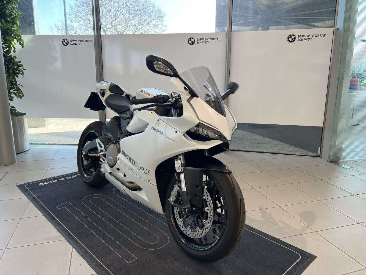 , um Verkauf steht eine wunderschöne Ducati 899 Panigale (Baujahr 2014) in der seltenen Sonderfarbe Arctic White Silk (Weiß) - ein echter Hingucker und deutlich seltener als die klassische rote Variante.