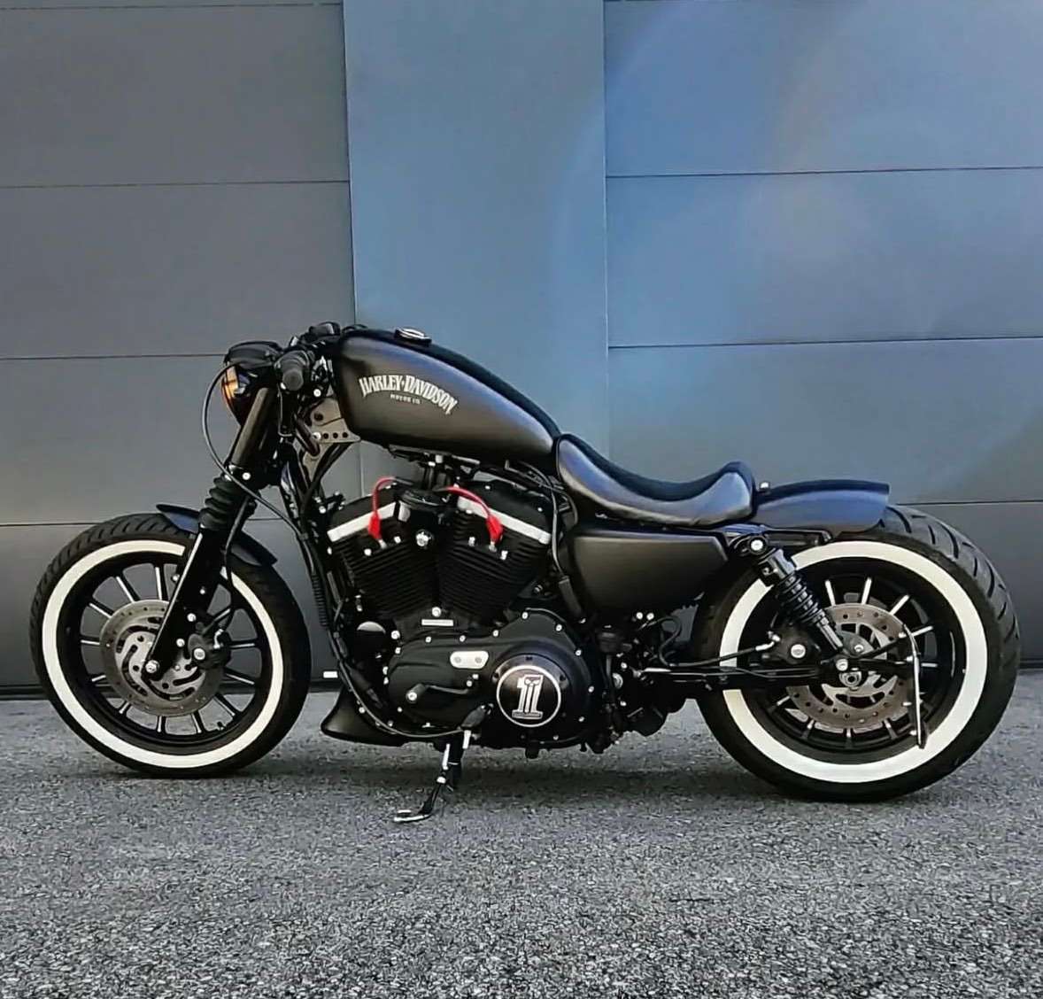 Meine Harley ist keine gewöhnliche Serien-Sportster, sondern ein sehr stimmig aufgebautes Custom Bobber Bike mit vielen hochwertigen Details. Die Kombination aus mattschwarzer Optik, klassischen Weißwandreifen und zahlreichen schwarzen Custom Parts verleiht meiner Harley einen kraftvollen und zeitlosen Charakter.