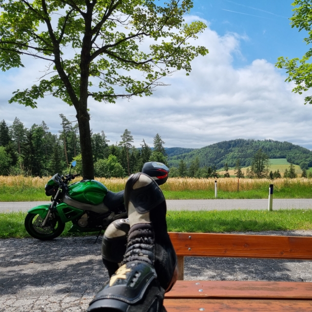 Abzugeben ist mit den Seitenkoffern, dem Topcase, einem Tankrucksack und einem Vanucci Einteiler.