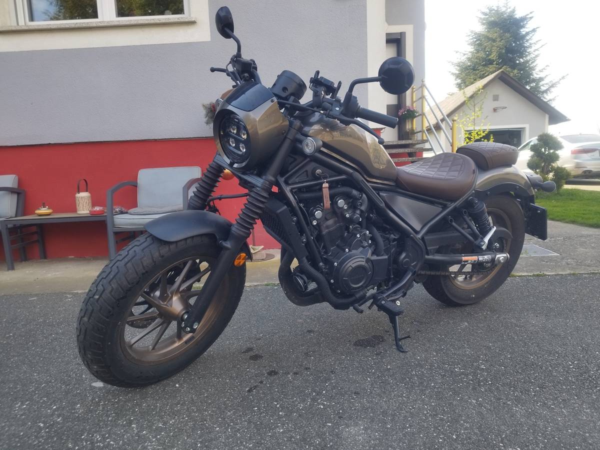 Verkaufe meine gut gepflegte Honda Rebel 500 S in Top-Zustand. Es handelt sich um die Special Edition aus dem Jahr 2023 mit Scheinwerferverkleidung mit getönter Scheibe, Retro-Gabelcover und Faltenbälgen, sowie einem speziellen Sitz in Diamant-Optik. Die Lackierung Titanium Metallic (wirkt grau-bräunlich) gab es nur bei der SE in diesem Jahr und ist sonst nicht erhältlich.