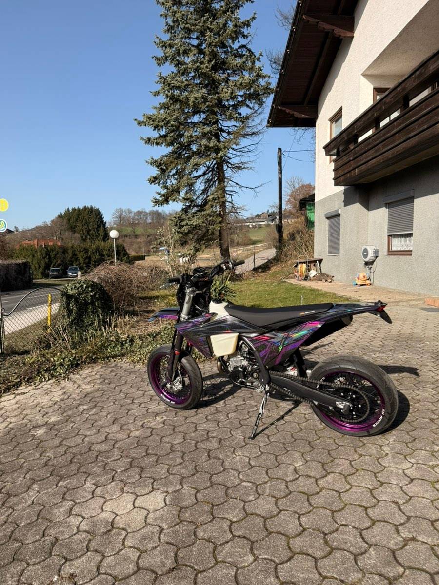 Supermoto-Umbau nach 15 BH mit hochwertigen SM Works Felgen (Violett/Schwarz, 17”)