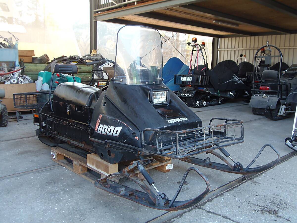 Okelboo 6000 Motorschlitten mit 2-Takt Rotax 503 Motor, CVT Getribe mit 2 Vorwärts und 1 Rückwärtsgang, E-Starter, 60cm Raupe. Motor läuft - Batterie deffekt.