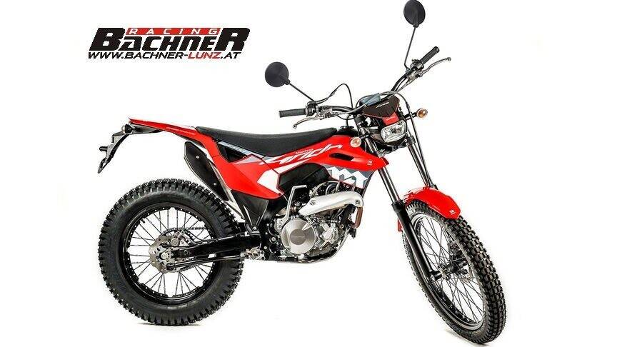 Wandertrial ohne Kompromisse; Toller leiser 4 Takter, einfach zu Fahren, auf Wunsch auch mit E- Starter; Großes Staufach unter der Sitzbank; um 3 cm verlängerter Federweg als bei normalen Trialmotorrädern. Sie meistert kurze Asphaltfahrten genauso, wie extreme Kletterpartien.