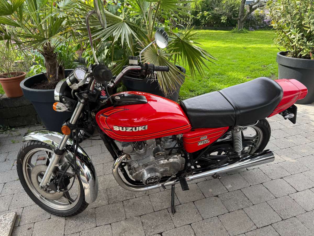 Suzuki GS 425 (1979) – nur ein Baujahr produziert, sehr geringe Stückzahlen, heute kaum noch im Originalzustand zu finden. Sie ist weitgehend original und fahrbereit, ideal für Sammler oder Liebhaber klassischer japanischer Motorräder.