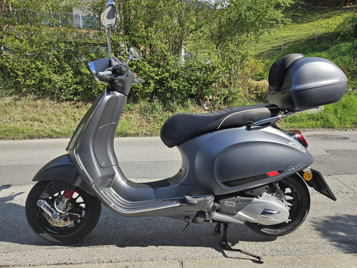 Vespa Sprint S 125 ABS, Baujahr 4/2020, Erstbesitz, servicegepflegt, 5.900 km, unfallfrei, inkl. Topcase, sehr guter Zustand. Neue Michelin City Grip Bereifung. Frisches Pickerl bis 4/27 ohne Mängel. Bei Besichtigung kann über den Preis ein wenig verhandelt werden.