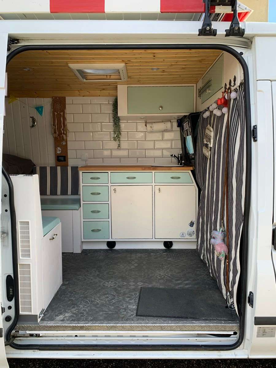 Zum Verkauf steht ein Ford Transit mit liebevollem Selbstausbau zum Camper alles vom Tischler.