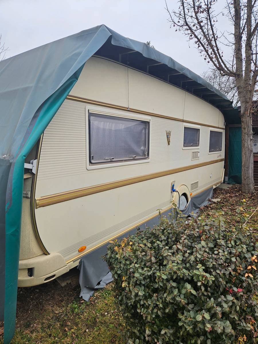 Verkaufe unsere Wohnwagen Tabbert Comtesse 560E. Der Wohnwagen steht auf einem Dauerstellplatz in (Slowenien) Moravske Toplice am Campingplatz Therme 3000. Er steht seit knapp 10 Jahren auf diesen Platz, wurde dazwischen nicht bewegt, daher hat er auch kein Gutachten. Zustand im Inneren sehr gepflegt. Der Stellplatz ist für dieses Jahr bezahlt ( ca. €1400) und kann auch übernommen werden. Der Preis bezieht sich auf alles was auf der Parzelle steht, Vorzelt, Küche usw.