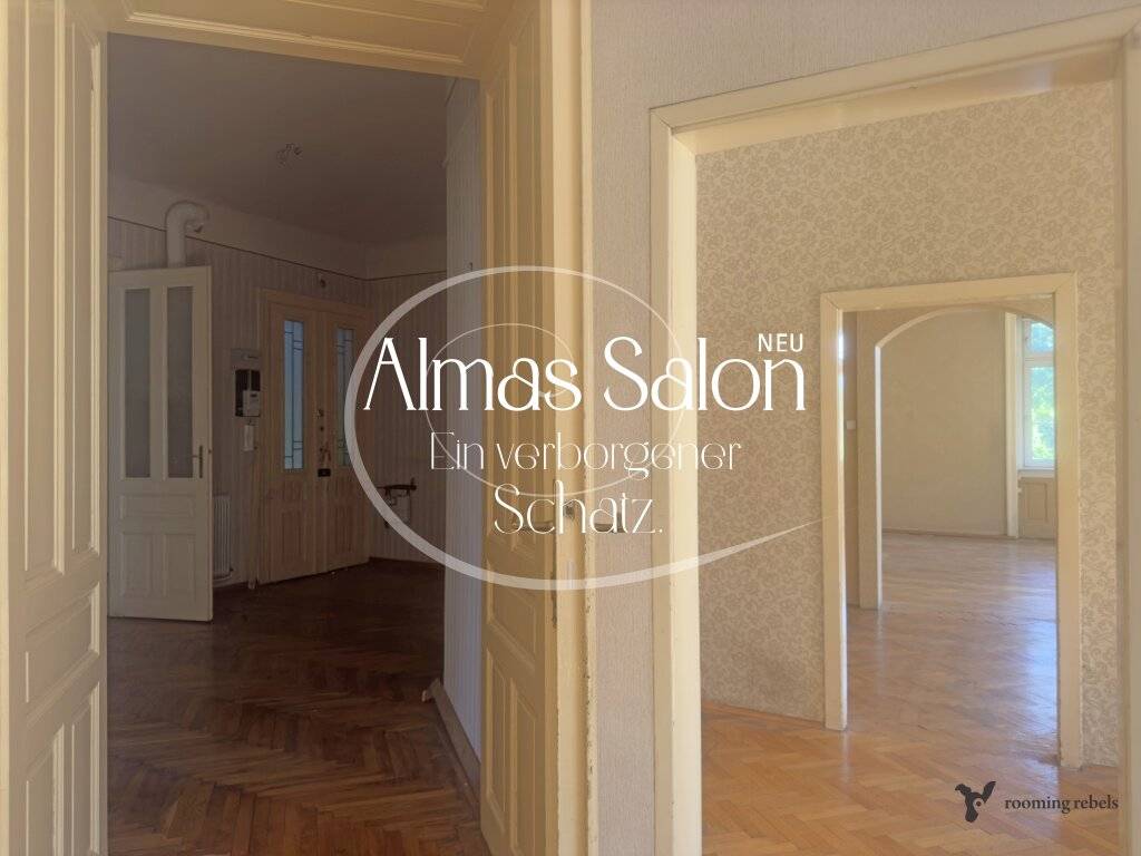 Willkommen in meinem Salon. Ich bin ALMA ein verborgener Schatz im 13. Bezirk - in der grünen Gallgasse und zu kaufen Gleich vorweg: Ich bin ein ungeschliffener Diamant und Du darfst mich wach küssen! Mein Reich erstreckt sich insgesamt über 160 m2 und meine 3,60 m hohen Räume erzählen Geschichten aus einer anderen Zeit.. Der ewige Kreis des Lebens - mehrere Zimmer bieten Platz für eine sehr große Familie, für Träume, für Wandel. Eine Wohnküche, mehrere Badezimmer, ein großer Salon, Jeden Tag Feste und Gäste,? Oder lieber Ruhe und Rückzug? Bei mir findest du Schattenplätze und sonnige Bereiche - ganz so, wie du es dir wünschst.. Alles ist möglich - wie hättest du es gerne? Genieße dein neues zu Hause auf der Veranda oder im Salon? Bist du schon Neugierig geworden? Wenn du mich kennenlernen möchtest, dann nimm dir die Zeit und organisiere deinen persönlichen Besichtigungstermin mit Christian & Max. Vielleicht beginnt hier eure gemeinsame Geschichte.