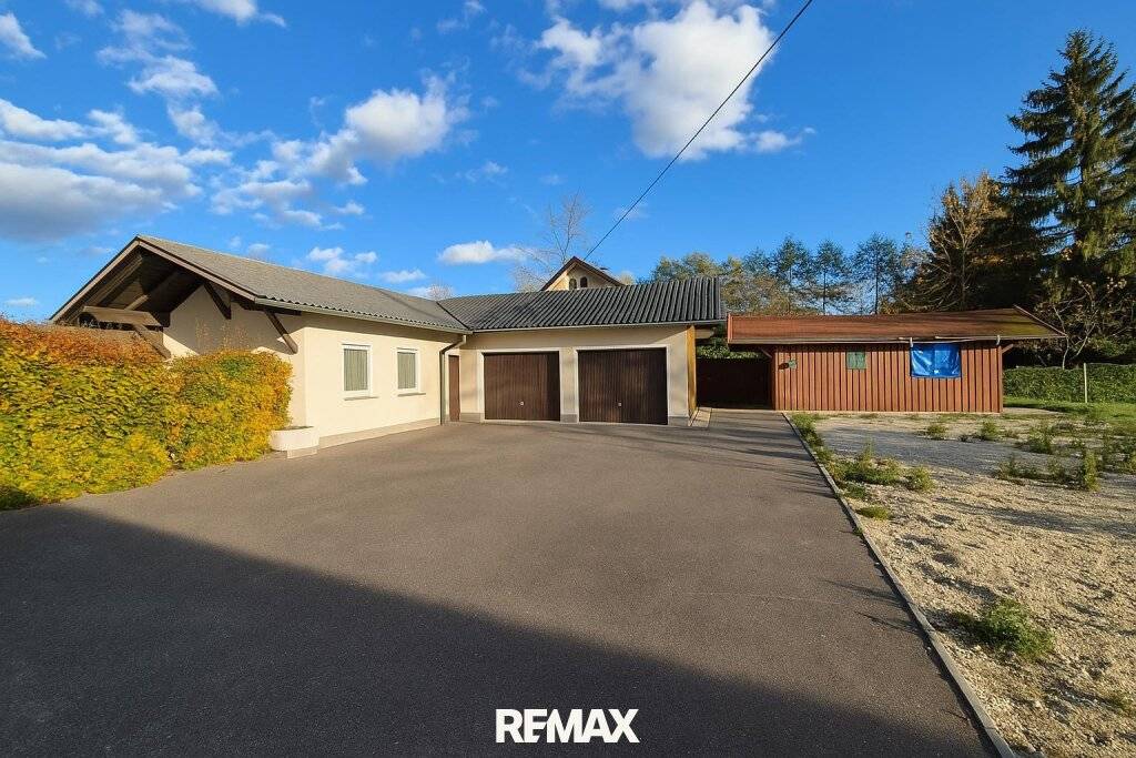Bestand: Doppelgarage, Nebengebäude sowie Schuppen.