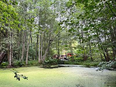 Idyllisches Grundstück mit Wald, Wiese, Teich, Bach und Geräteschuppen