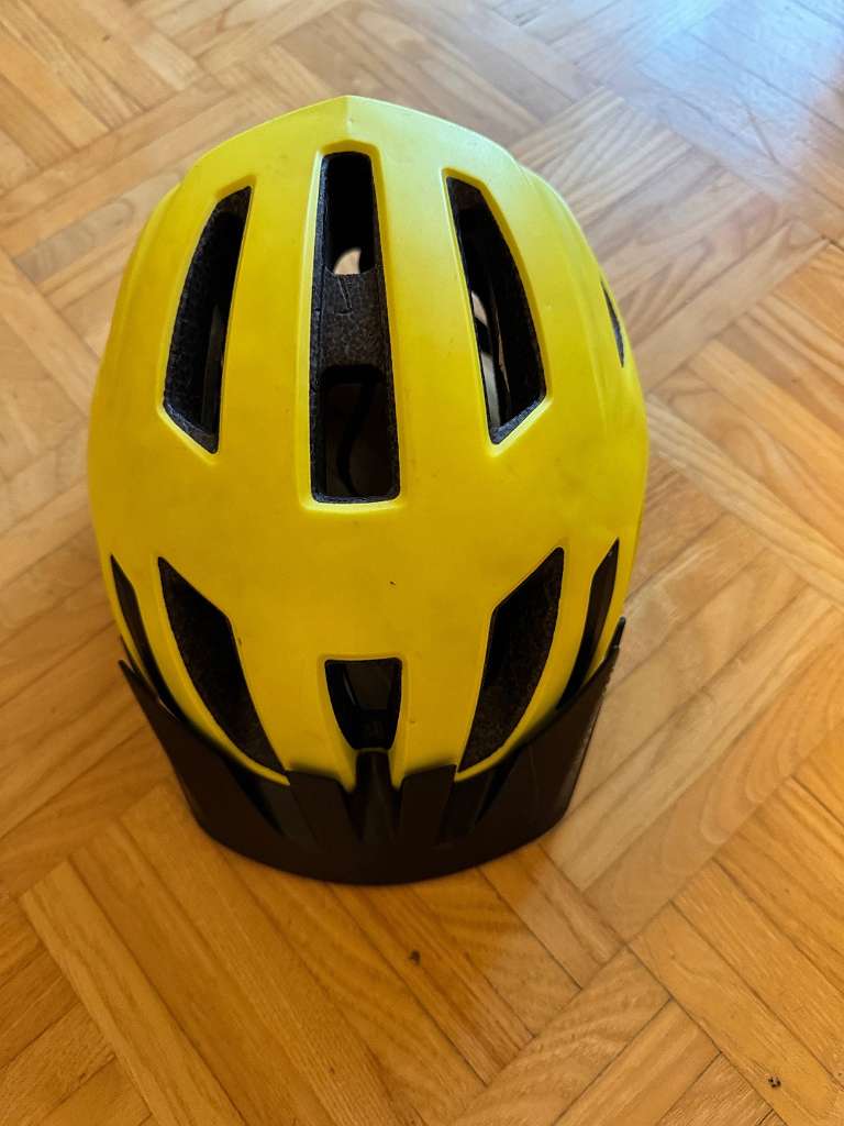 Verkaufe einen Grün/Gelben Jungendradhelm mit funktioniertem rotem Rücklicht.