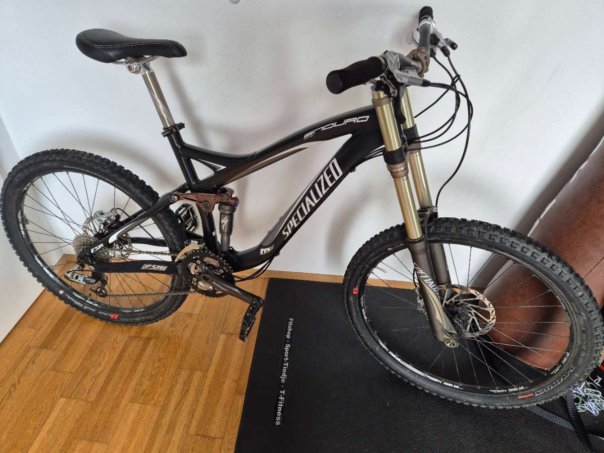 Zum Verkauf steht ein klassisches Specialized Full-Suspension Mountainbike (Enduro Comp SL, Rahmengröße M), ideal für ambitionierte Trail-Fahrer:innen oder alle, die Komfort und Performance schätzen.
