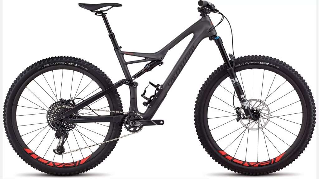FACT 9m carbon front chassis w/ Specialized M5 Aluminum rear end, 29/6Fattie Trail Geometry, SWAT Door integration, PF30 BB, fully enclosed internal cable routing, ManFu link, 12x148mm dropouts, sealed cartridge bearing pivots, replaceable derailleur hanger, 135mm of travel