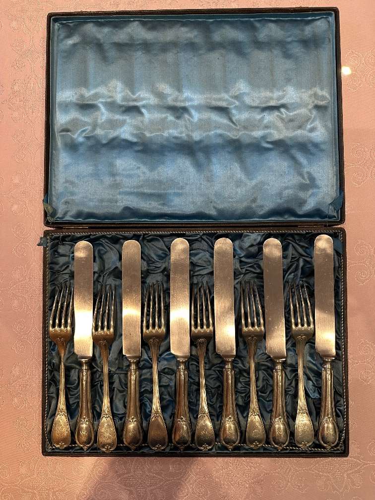 12 teiliges Antikes Besteckset aus Alpaka-Neusilber mit Originalbox