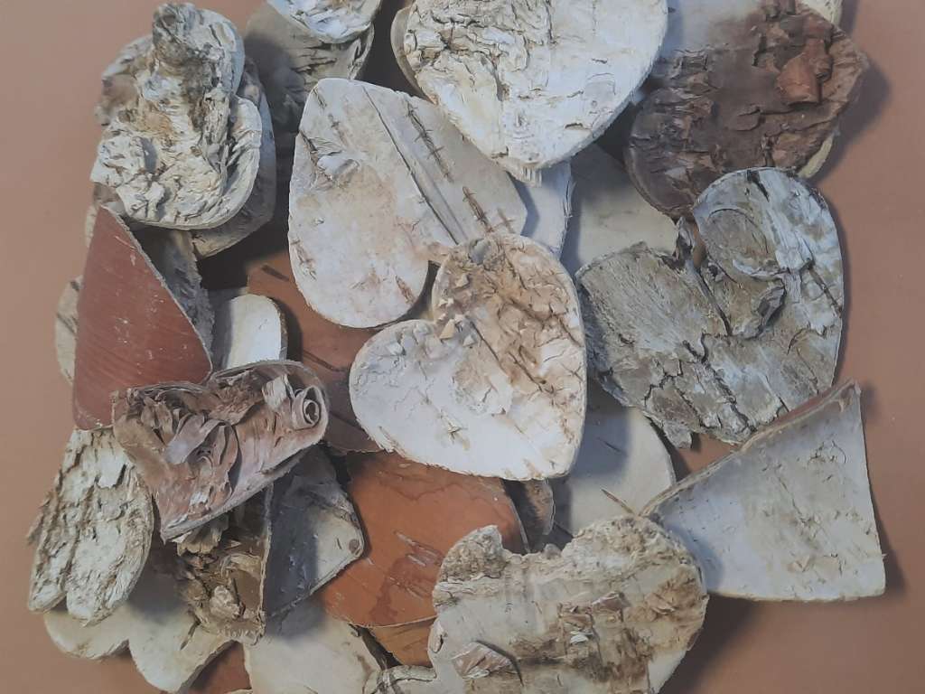 150 Birkenherzen Deko Birkenrinde