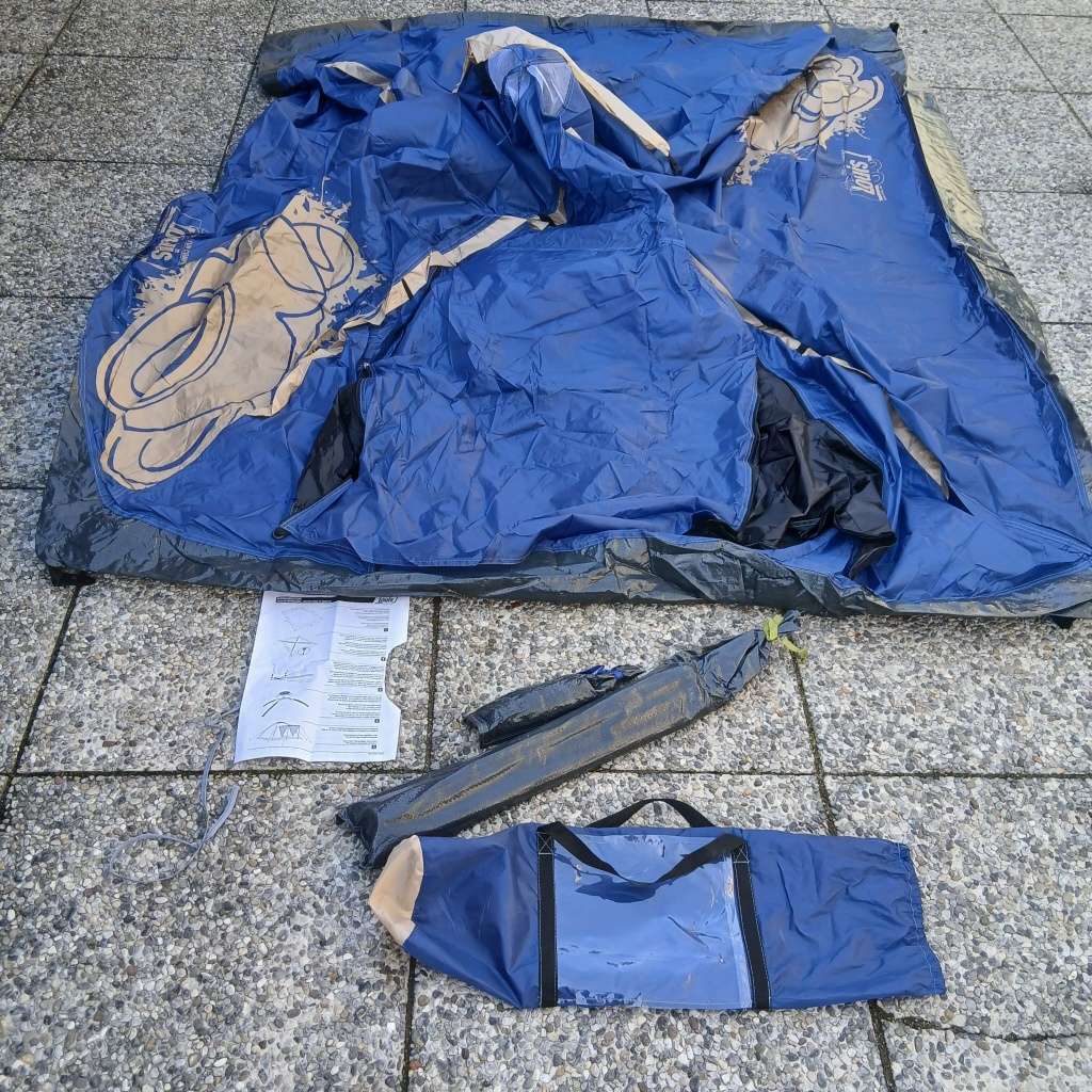 Unbenutzes Zelt. Wurde nur für das Foto ausgepackt. Zelt, Gestänge und Heringe passen in die dazugehörige Tasche.