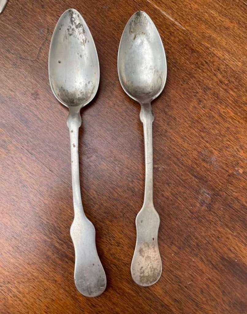 2 Stk. antike Teelöffel Silber - VMS Dianakopfpunze