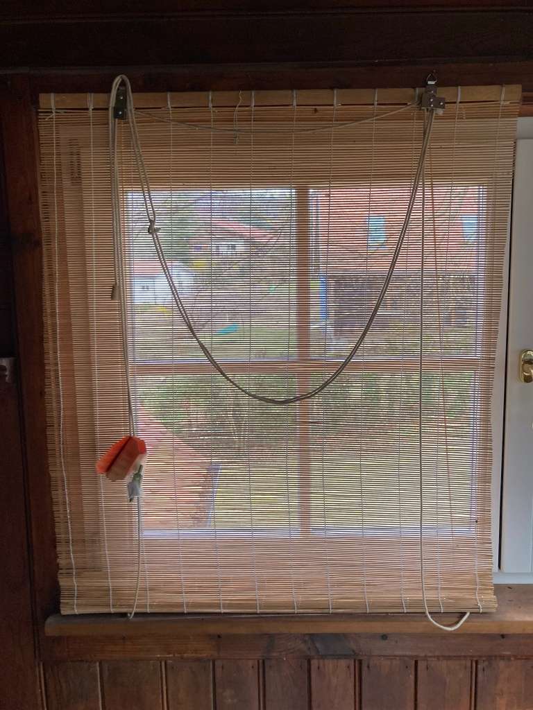 - Funktion: Einfache Bedienung über Seilzug (stufenlos verstellbar). Inklusive Aufhängevorrichtung oben.