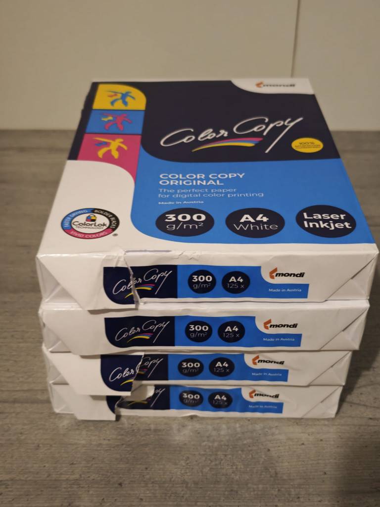 4 Packungen a 125 Blatt Mondi Papier A4 Druckerpapier - 300 g/m² Satin Weiß