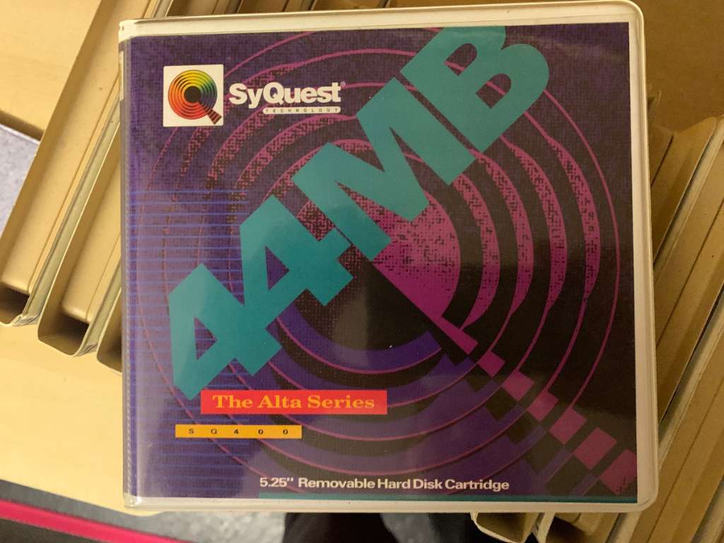 Ich trenne mich von 12 nur einmal beschriebenen SyQuest 44MB Removable Cartridges aus meinem Backup-Archiv aus den 90ern und einer PLI Platte, die heute schon Museumstücke sind. Sammler werden sich sehnsüchtig an die Zeit erinnern, als 44MB noch 5.25 Inch Wechselplatten Kassetten passten, die (noch in Schillling) einen Tausender das Stück kosteten. Bei eBay kriegt man sie ab € 12 plus Vesand, sogar neu um € 72 plus Versand.