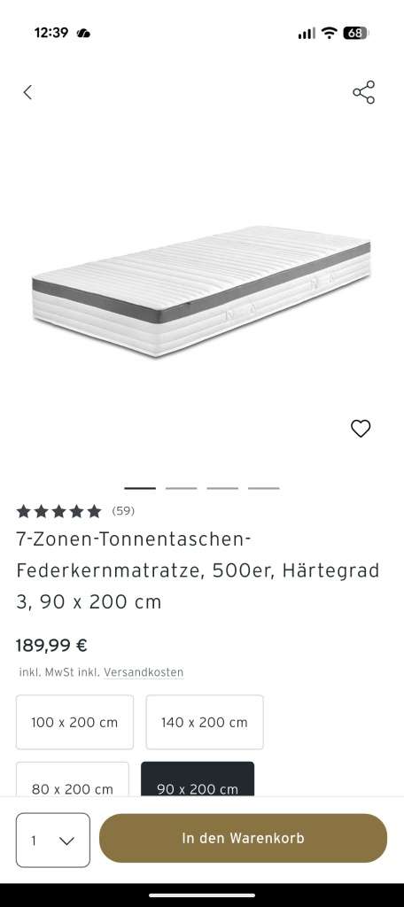 7 Zonen Tonnentaschen Federkernmatratze, Härtegrad: 3, Masse: 90x200cm. 13 Monate in Verwendung. Neuwertige.
