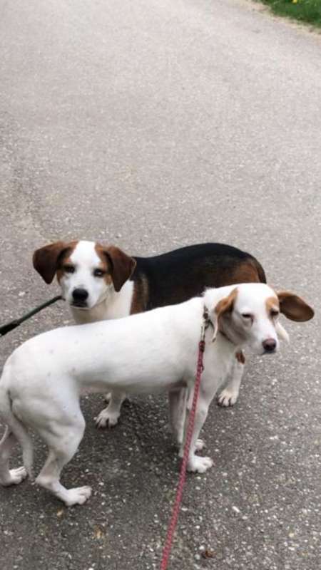 Die beiden Hundegefährten ABAGAIL und BONGO sind Freunde fürs Leben. ABAGAIL ist eine knapp 2,5 Jahre alte, 40 cm große und 15 kg schwere Istrianbraken-Hündin. BONGO ist ein fast 3 Jahre alter, 40 cm großer und 15 kg schwerer Brakenmix-Rüde. Beide Hunde sind kastriert. (Stand: 4.7.2023)