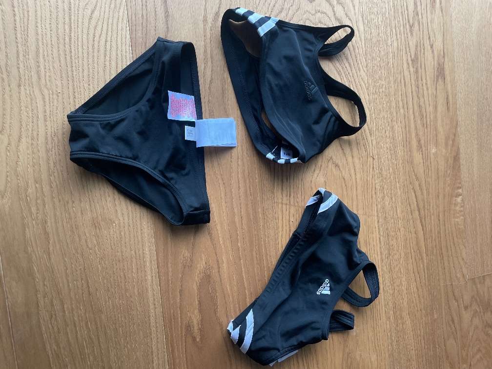 Adidas Bikini, sehr eng geschnitten daher eher 116/122. ich geb noch 140 Oberteil dazu.