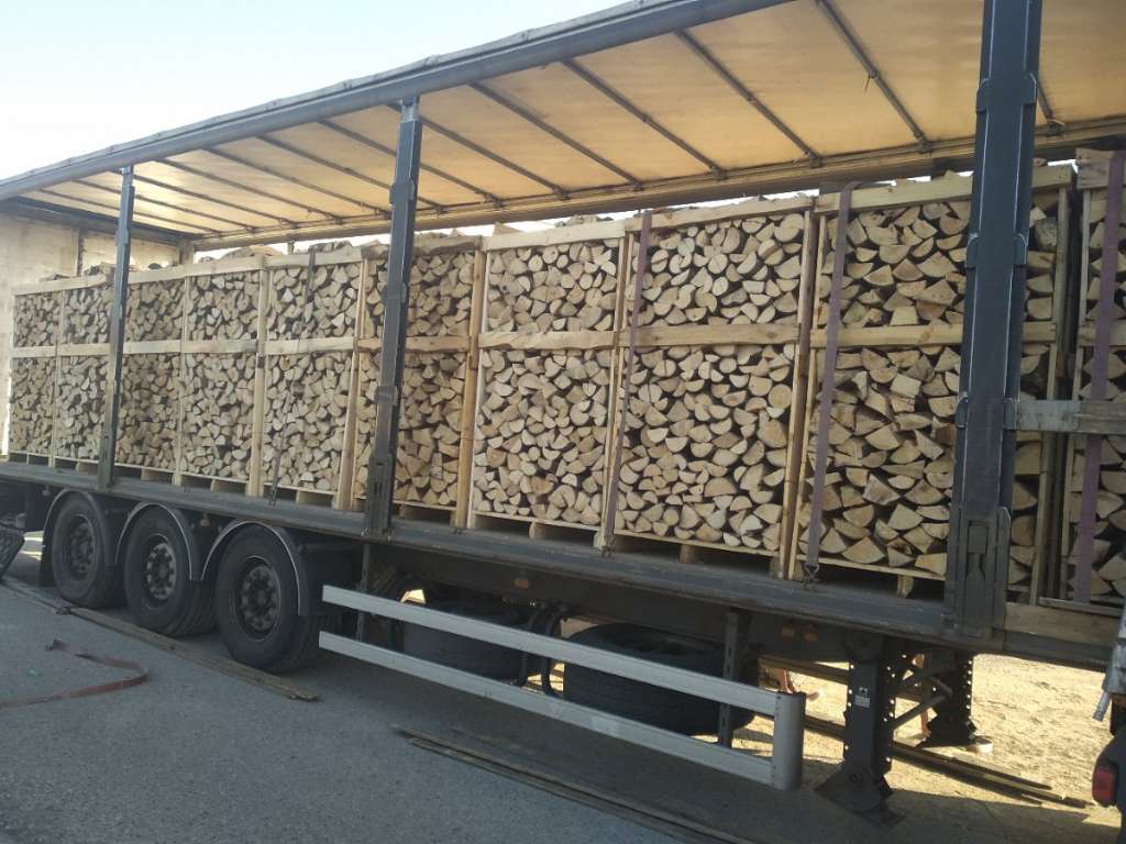 Holz ist gespaltet und geschlichtet in Holzpaletten/Kisten oder in Bundel(Fotos anbei)