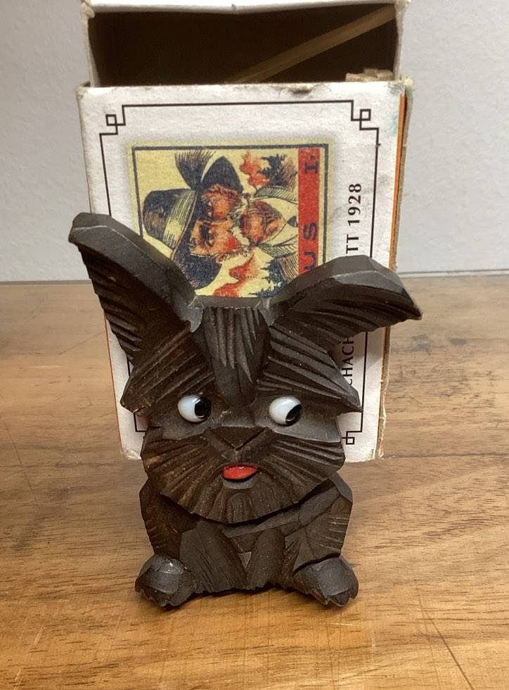 alter Zündholz-Schachtel Halter, Holz, Terrier Gesicht