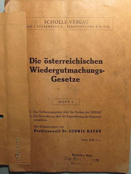 "Die österreichischen Wiedergutmachungsgesetze", ein altes Heft aus der Zeit. Rund 30 Seiten, Zustand altersbedingt, Rest siehe Foto.