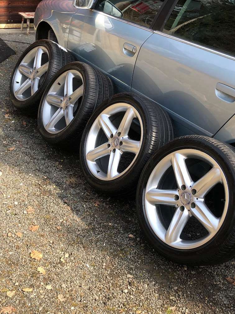 Alu Felgen mit Reifen für Mercedes SL Zum Kauf werden sehr schöne, wie neue Alufelgen mit neue Reifen angeboten. Dimension vorne 255/40/ZR18 und hinten 285/35/ZR18