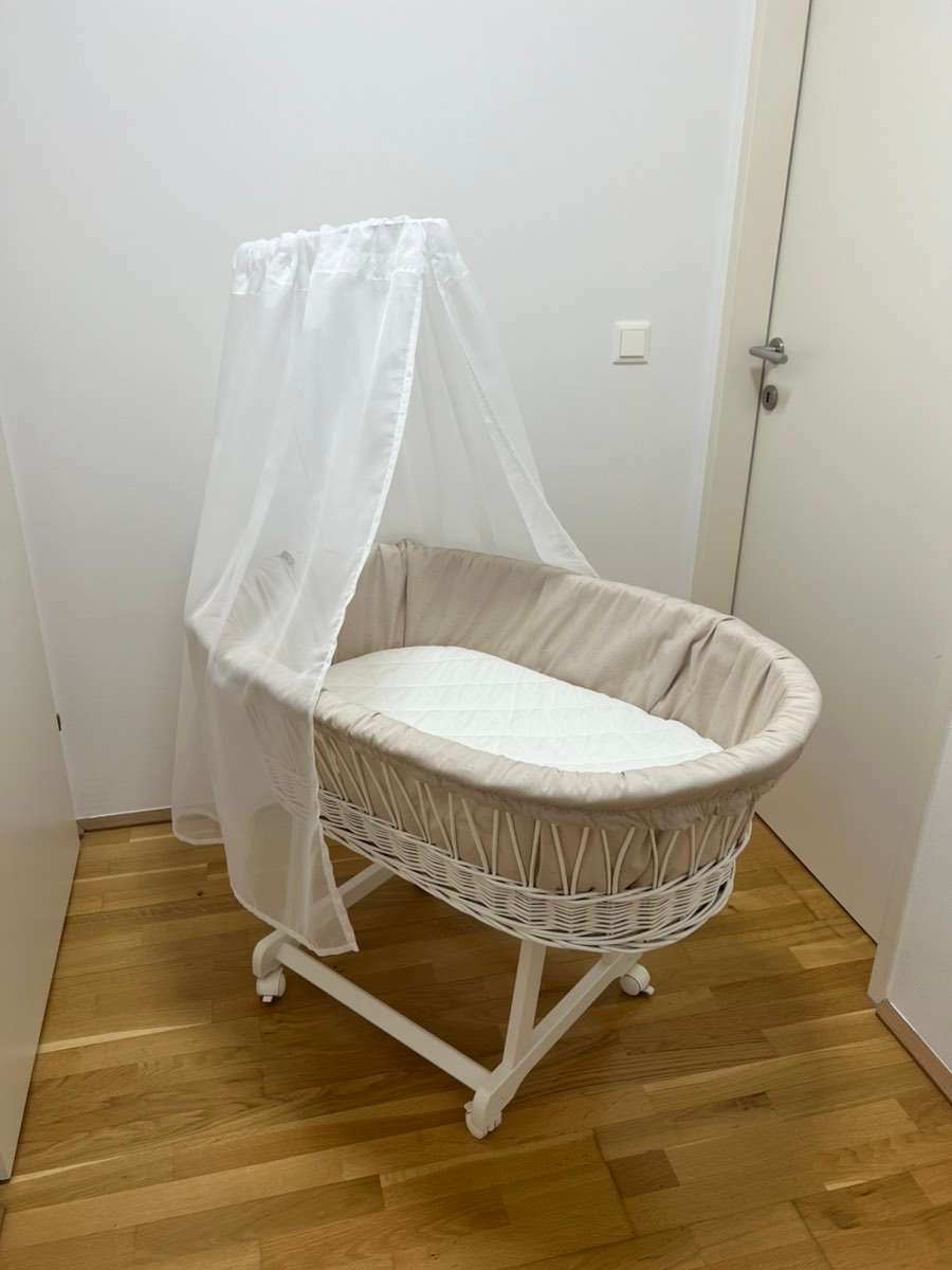 Die Wiegengarnitur und eine der zwei Matratzen habe ich neu gekauft, der Stubenwagen hatte bereits einen Vorbesitzer.